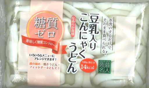 MIYUKIYA FUJIMOTONouilles de Konjac façon udon Ce produit est fabriqué à base de lait de soja et de konjac. Sa texture lisse est agréable en bouche. Grace a la ...